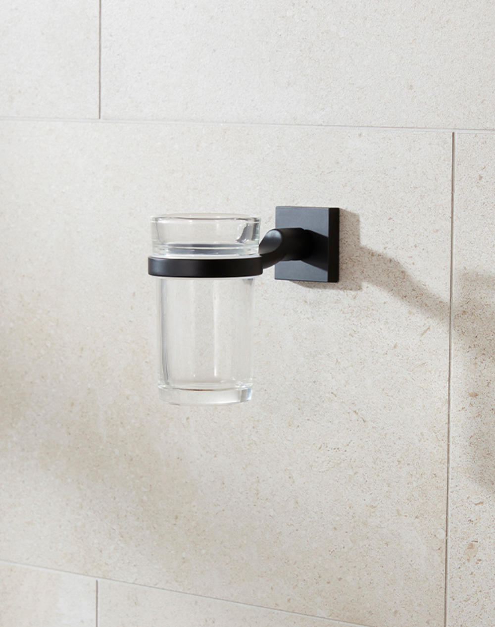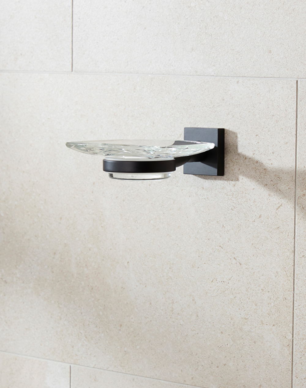 Tumblers and soap dishes in the Atlanta collection are made of clear glass. They are removable and can easily be washed in the dishwasher.