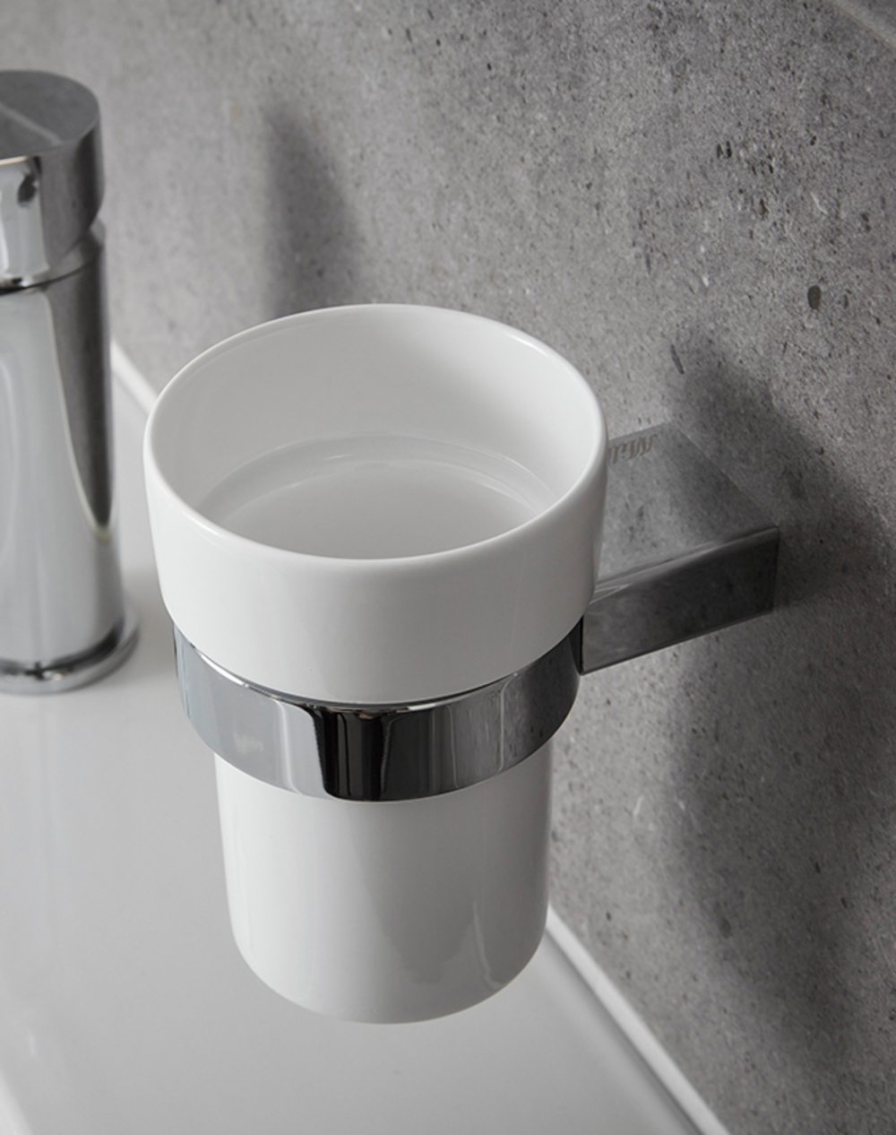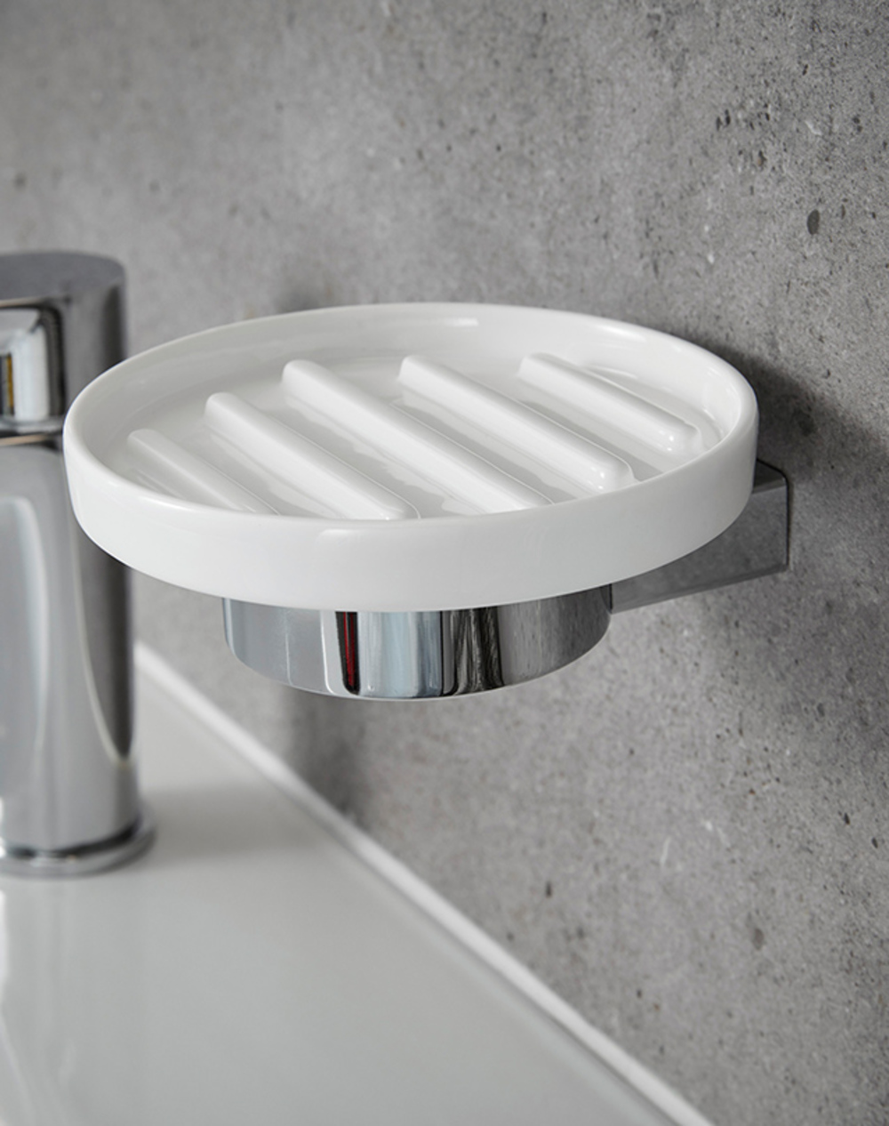 Tumbler Holder, Soap Dish and Soap Dispenser in the Boston collection are made of white ceramic. They are removable and can easily be washed in the dish washer.