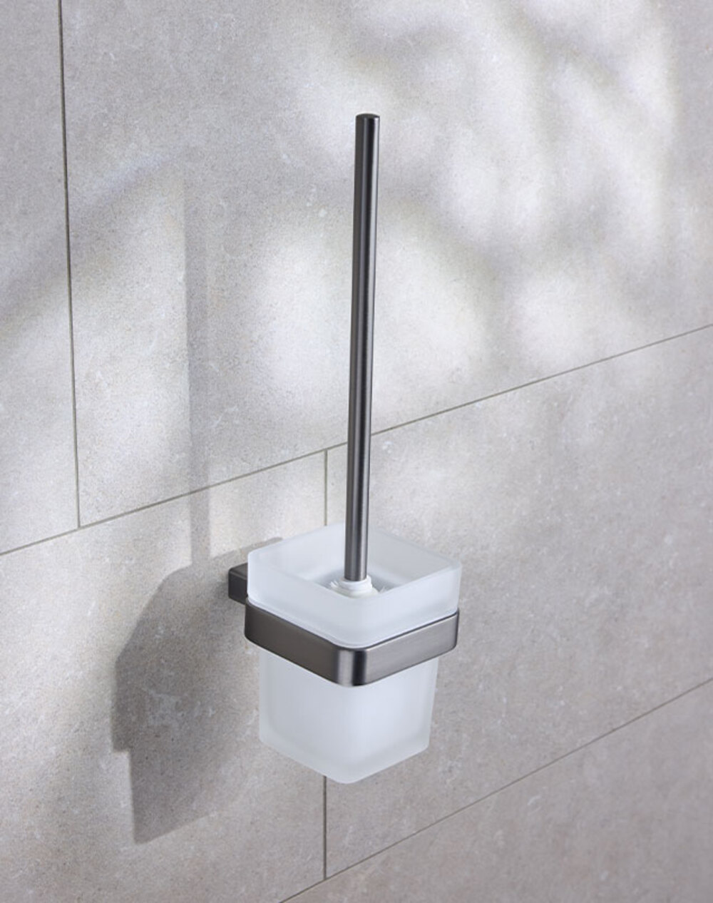 Wall hung Toilet Brush Set with removable bowl in frosted glass.