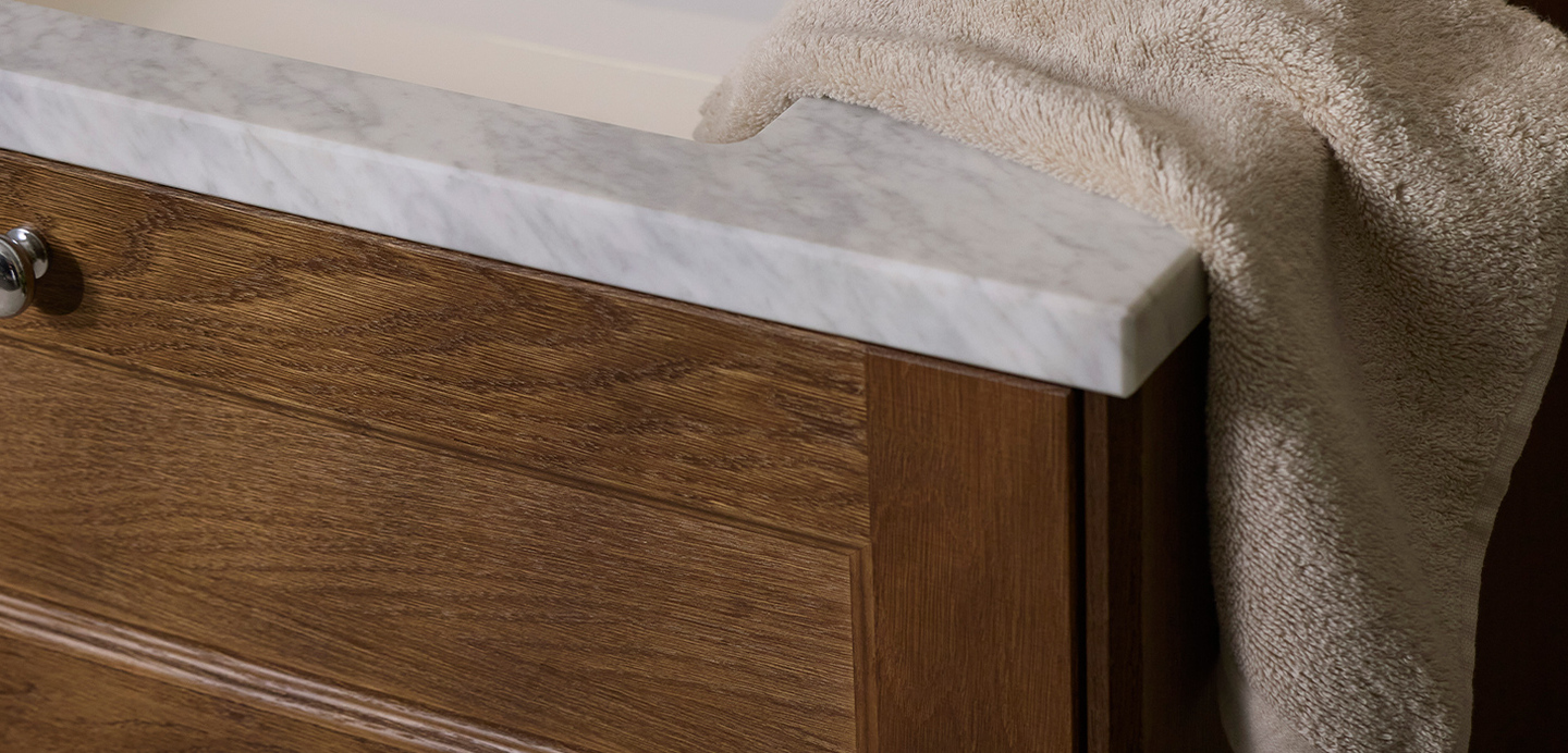 With Kensington in Warm Oak and Natural Oak, wood takes centre stage in the bathroom – alive, warm and timeless. The soft tones and natural wood grain create an inviting expression that evokes a sense of calm, balance and timeless elegance.
