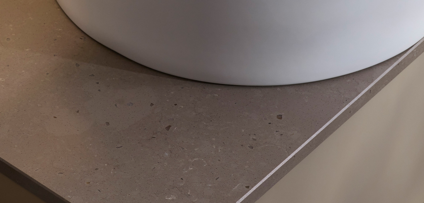 Kalkstensliknande bänkskiva men i vårt mest tåliga material, kvartssten.