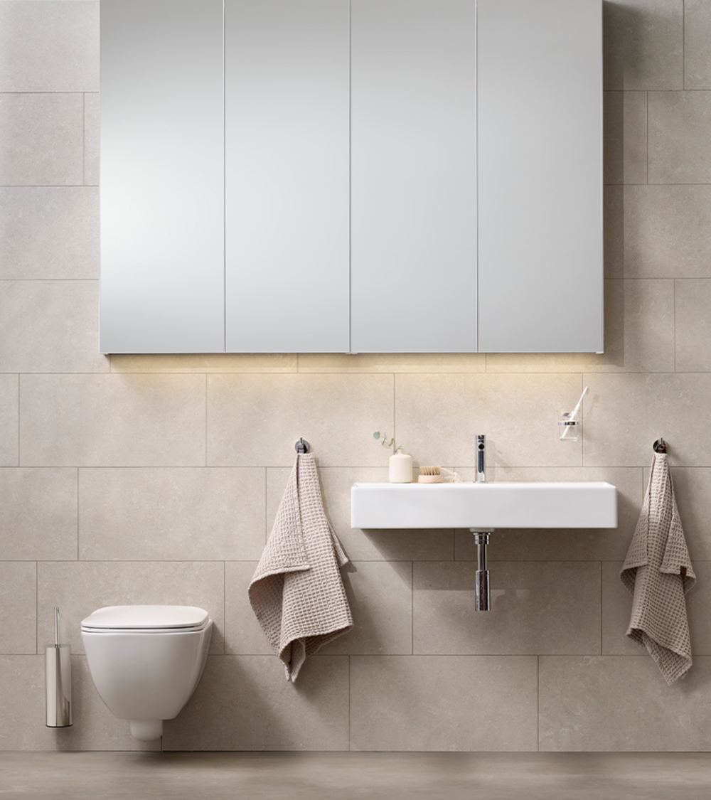 Välj spegelskåp med eller utan integrerad dimbar Led underbelysning, styrs via väggdimmer.
