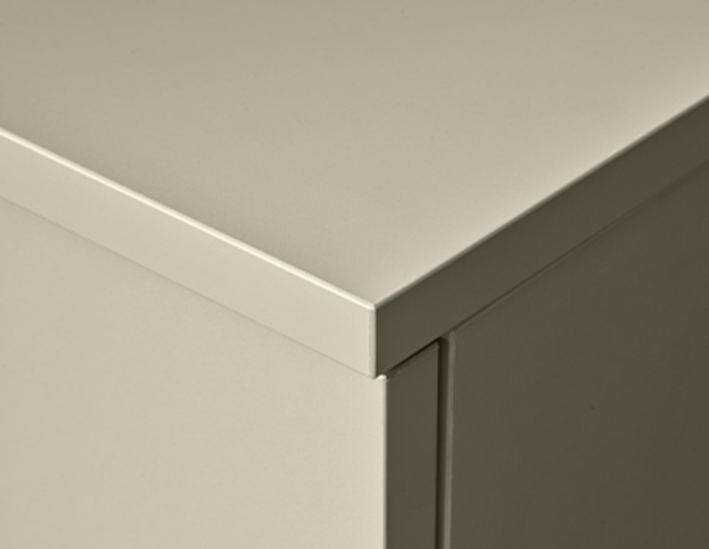 Känn på den silkeslena ytan. Möbeln är lika behaglig att se på som att ta på. Laminatet i ytan motverkar fingeravtryck och ger en sober matt effekt. Styrkan i laminatet gör City till ett intressant och mycket hållbart val.