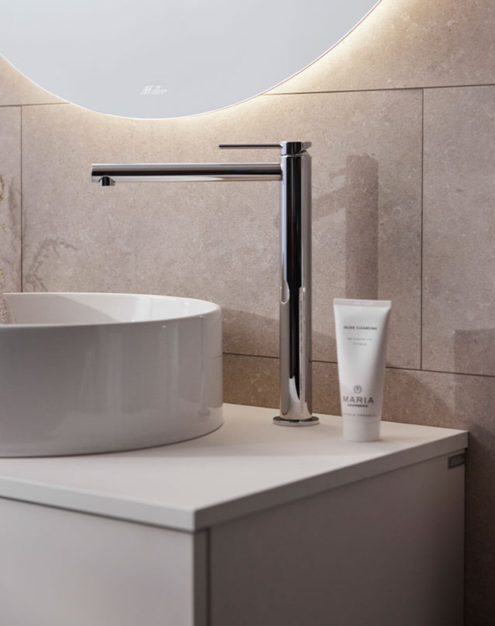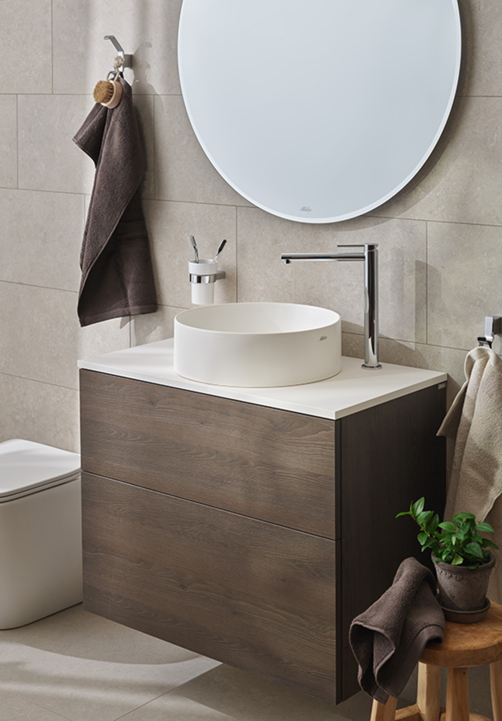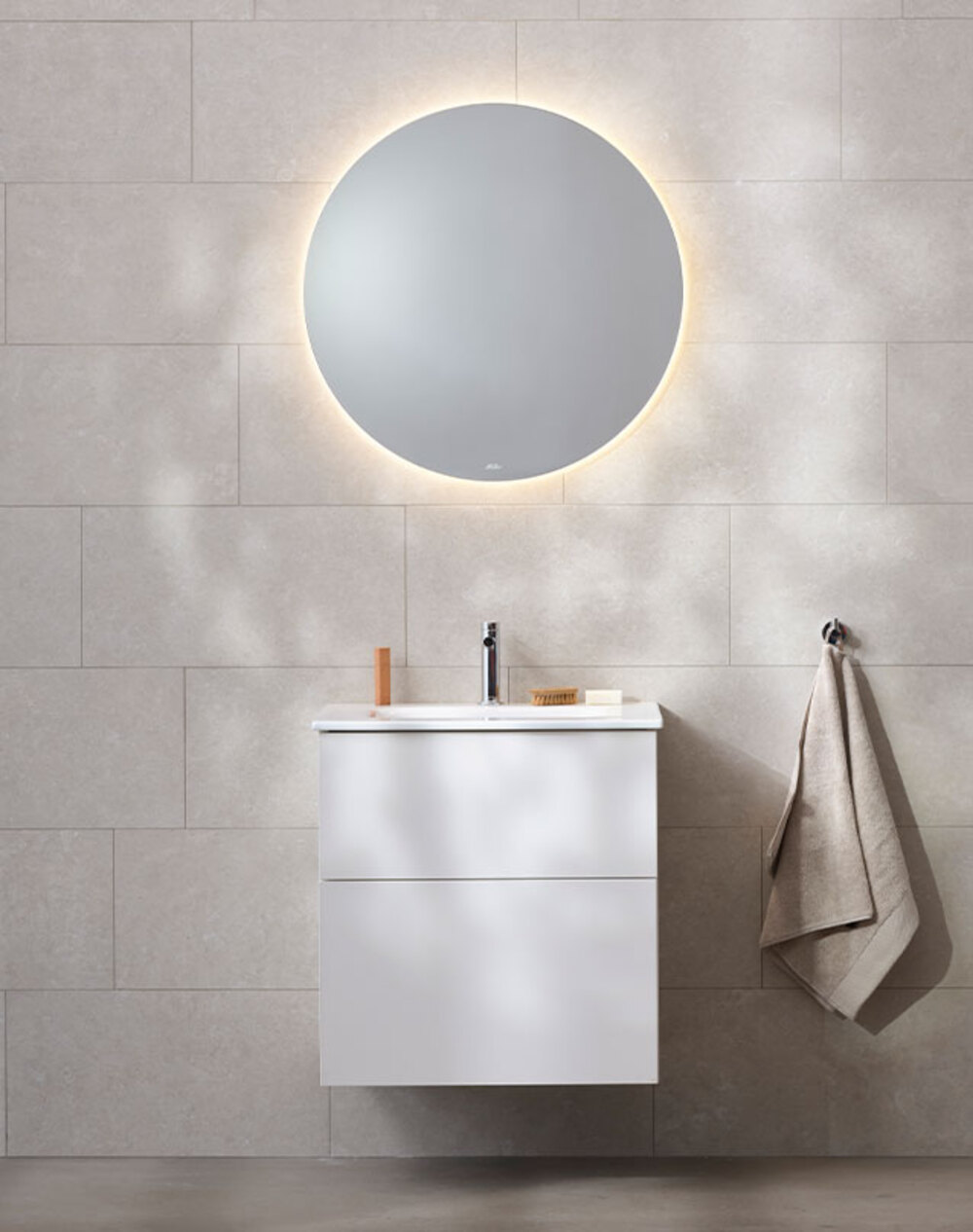 Edge heltäckande handfat har en tunn porslinskant och finns i flera färger. Komplettera handfatet med en matchande bottenventil i samma utförande som ditt porslin.