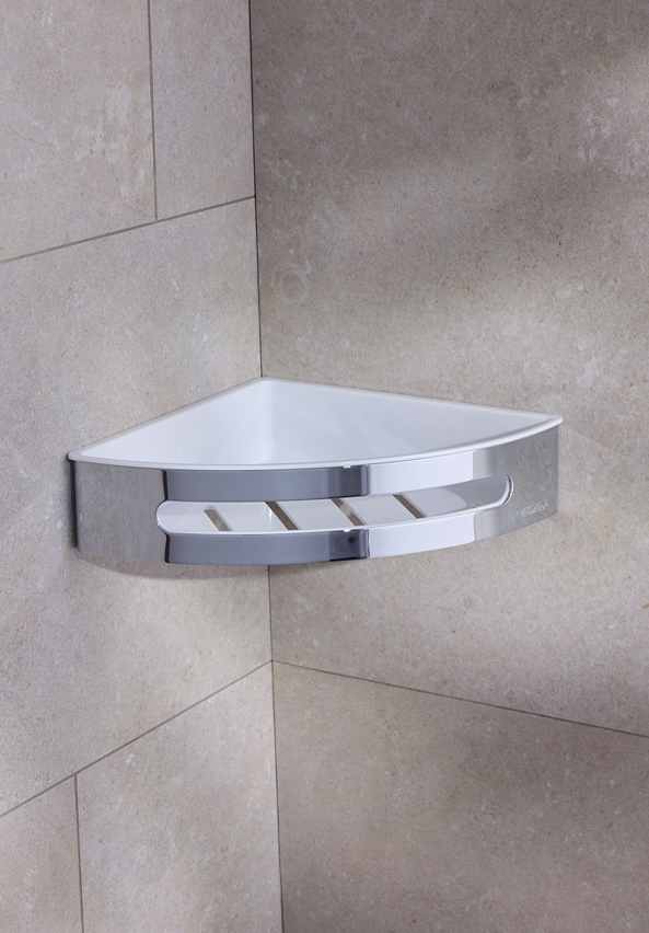 Corner Shower Basket Chrome, White liner Signature