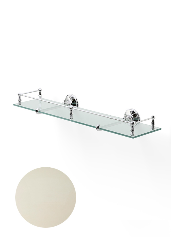 Glass Shelf in Clear Glass with a decorative Guard Rail.