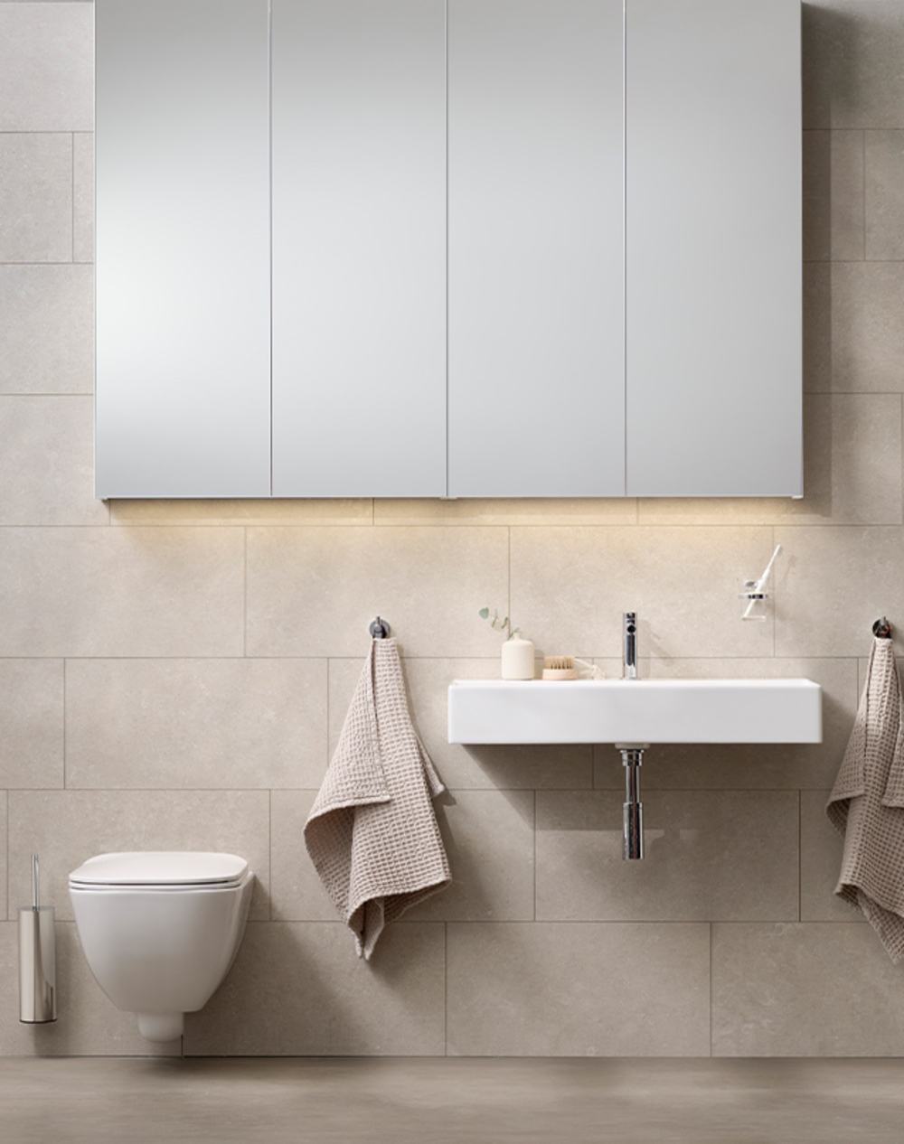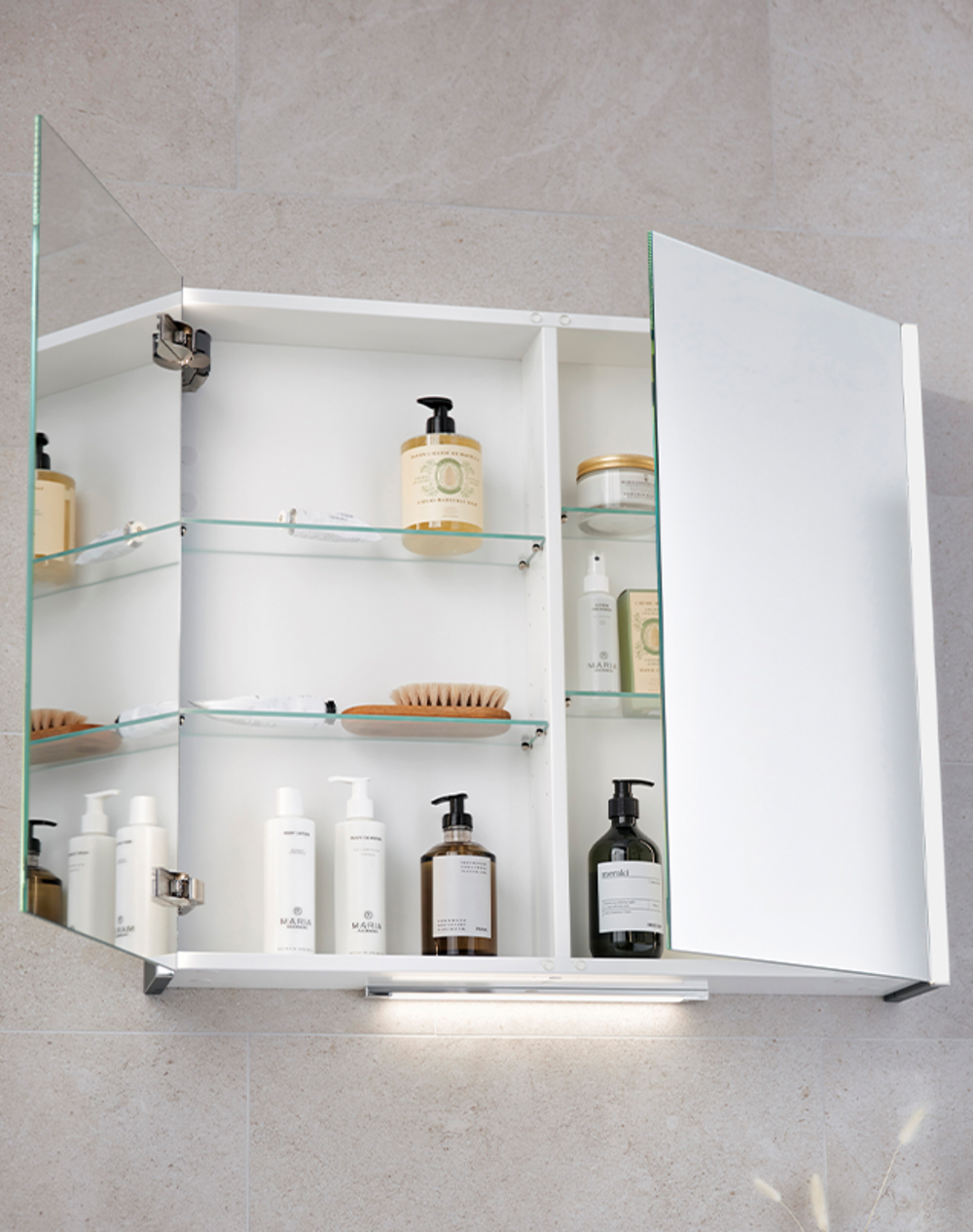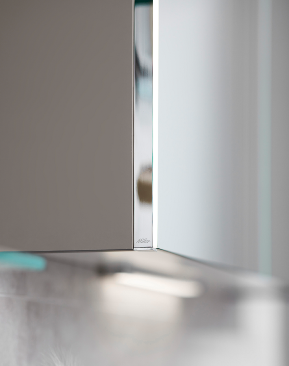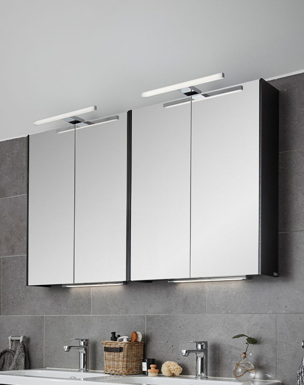 Spegelskåpen är utrustade med Linear Led belysning. Ett energisnålt och samtidigt kraftfullt ljus som ger en jämnare spridning utan skuggor eftersom det lyser från sidorna.