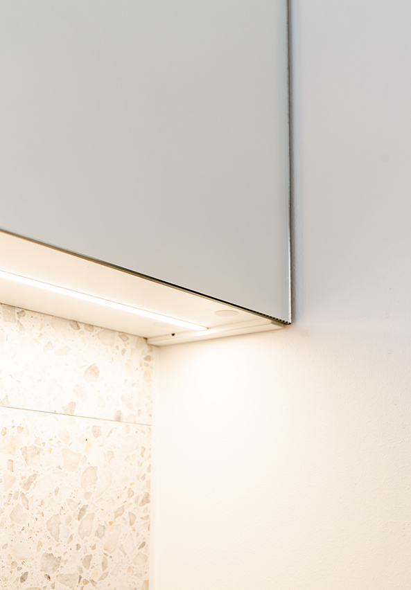 Sky Higher Spegelskåp är 133 cm högt och ritat för badrum med en takhöjd på ca +/- 260 cm (Se Sky High för lägre takhöjd). Belysningen är av energieffektiv och högkvalitativ LED som kan DIM-styras via väggbrytaren (drivdonet är av typen fasdimringsbart och är kompatibelt med exempelvis systemet Plejd). Levereras med 6st flyttbara glashyllor och rejäla hyllbärare som säkert låser hyllplanen på plats. Mittvägg i skåpet möjliggör till en mer flexibel förvaring samt till skåpets stadighet. Levereras färdigmonterade med upphängningsskenor samt beslag som möjliggör finjustering up/ned vilket är extra viktigt om man placerar flera skåp sida vid sida för att skapa en effekt av en hel spegelvägg. Dubbelsidiga spegeldörrar med 3 stabila gångjärn per spegeldörr och en öppningsvinkel på hela 125 grader. Välj till så många sidoljus som önskas (max 2st sidoljus per skåp). Även möjligt att välja till spegelsida/ sidor som avslutning på skåpet. Går även att välja till eluttag för fri placering inne i skåpet. Samtliga tillval levereras separat och monteras av installatör/ elektriker.
