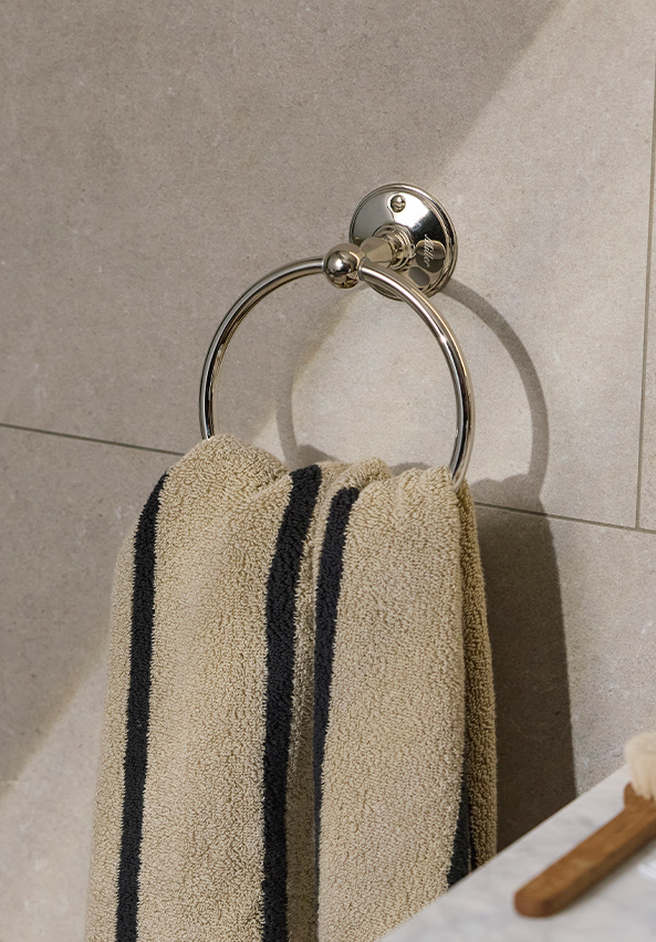 Vår serie Stockholm monteras med synliga skruvar, vilket förstärker det traditionella uttrycket och lyfter fram omsorgen i varje detalj. Serien finns i krom i hela sortimentet. Utvalda produkter erbjuds även i polerad nickel – en något varmare ton jämfört med krom – samt i polerad obehandlad mässing, en levande yta som med tiden utvecklar en vacker patina. Perfekt för badrum med klassisk eller traditionell stil.