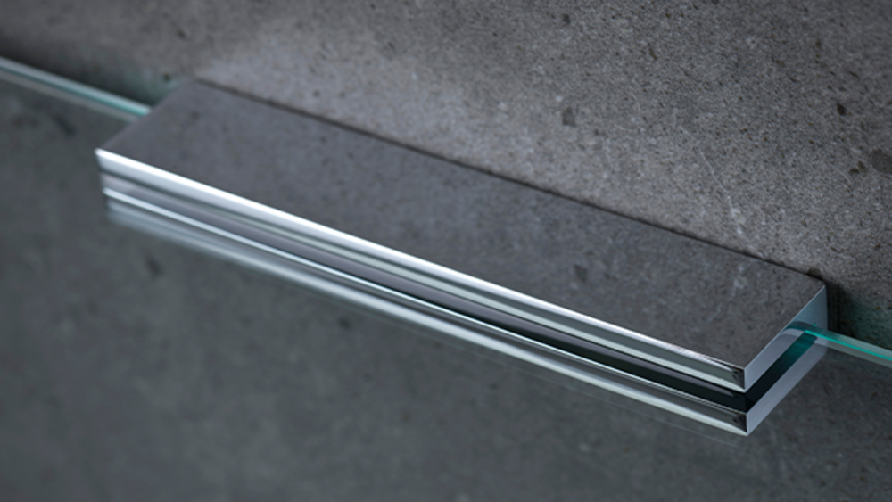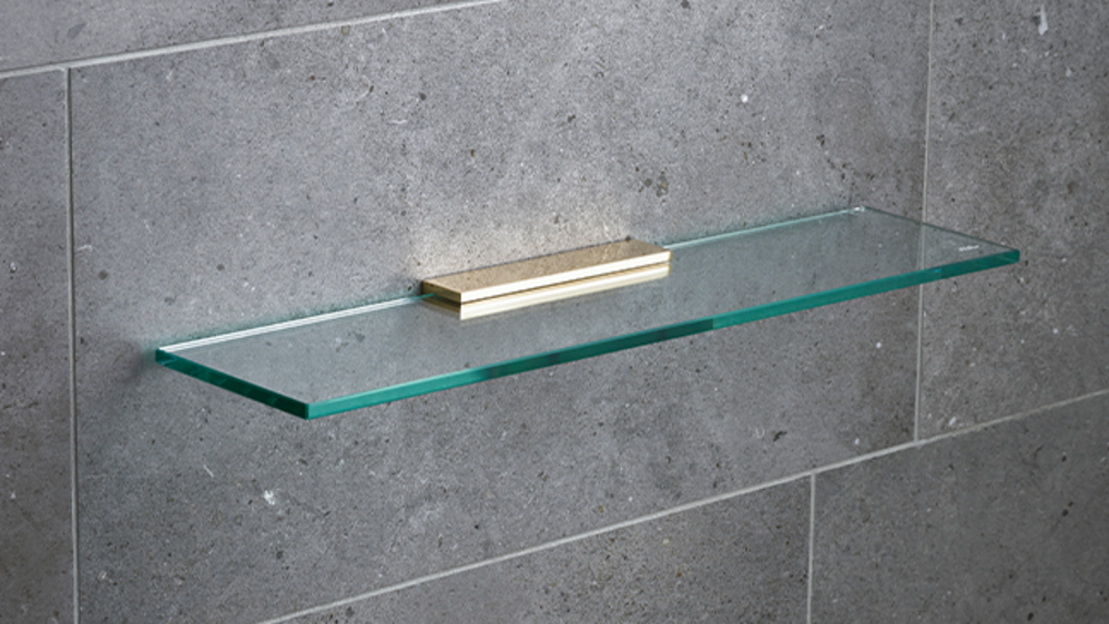 Glass shelf made of 8 mm tempered clear glass. Bracket is made of solid brass in various finishes. Glass Shelf is available in lengths 30, 40, 50 and 60 cm.