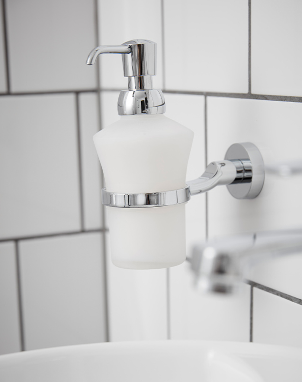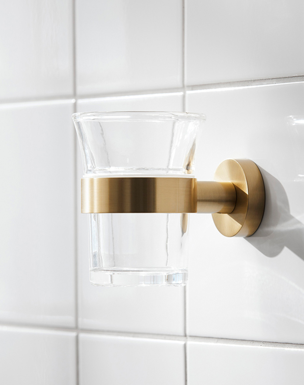 Tumblers and soap dishes in the Bond collection are made of clear glass. They are removable and can easily be washed in the dishwasher. The Soap Dispenser Bottle is in frosted glass.