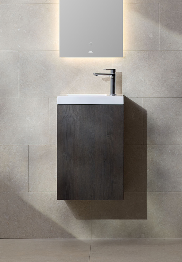 Our smallest door vanity unit, only 35 cm deep. This vanity is for full cover basin 165W1. Left hung door.