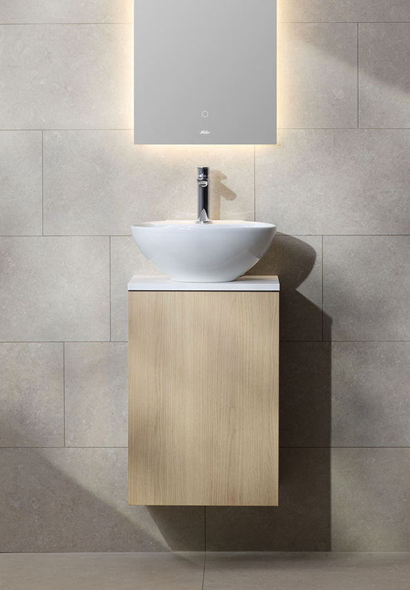 Our smallest door vanity unit, only 35 cm deep. This vanity is for worktop and free standing basin. Left hung door.