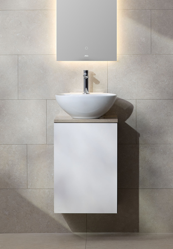 Our smallest door vanity unit, only 35 cm deep. This vanity is for worktop and free standing basin. Left hung door.