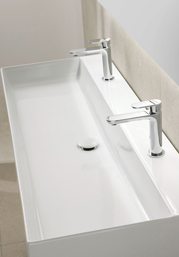 The Bloc basin can be wall mounted on fitted to our vanity units