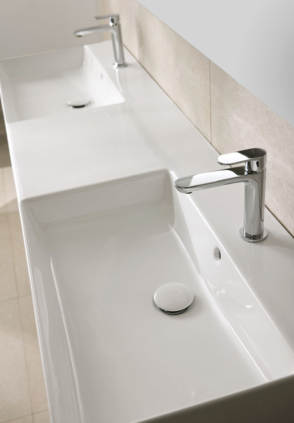 The Bloc basin can be wall mounted on fitted to our vanity units